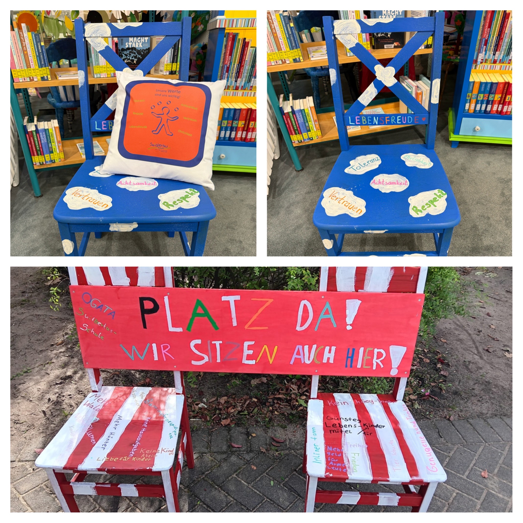 Auch die Suitbertusschule hat zwei (oder drei?) tolle Stühle mit den Kindern zum Weltkindertag in Ratingen gestaltet. Diese werden im Medienzentrum der Stadt in den kommenden Wochen ausgestellt. Es gibt auch eine Rallye für die Kinder zum Erkunden. Es lohnt sich demnach auf jeden Fall vorbeizuschauen (und ein spannendes Buch kann man auch direkt ausleihen…).